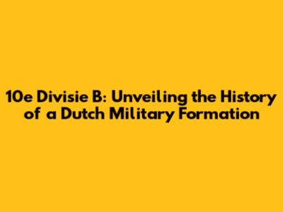 10e Divisie B: A Deep Dive Into Dutch Military History