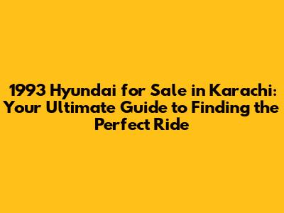 1993 Hyundai For Sale In Karachi: Your Ultimate Guide