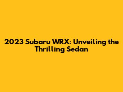 2023 Subaru WRX: A Deep Dive Into The Thrilling Sedan