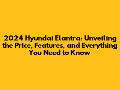 2024 Hyundai Elantra: Price, Features, And More