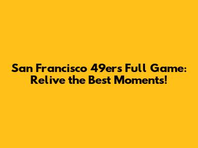 49ers Full Game: Relive The Best Moments!
