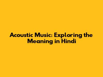 Acoustic Music: Exploring The Meaning In Hindi