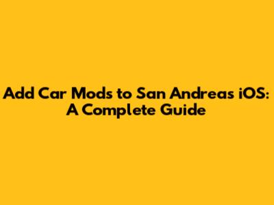 Add Car Mods To San Andreas IOS: A Complete Guide