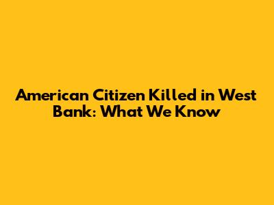 American Citizen Killed In West Bank: What We Know