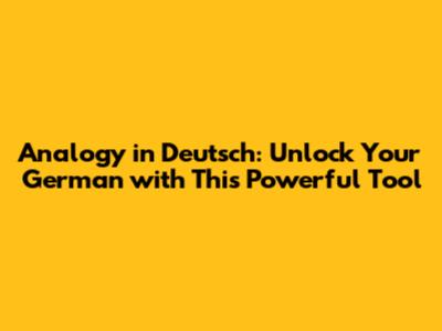 Analogy In Deutsch: Unlock Your German With This Powerful Tool