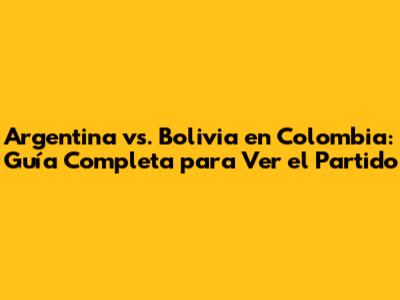 ¿Dónde Ver el Partido Argentina vs. Bolivia en Colombia? Opciones de Transmisión y Canales