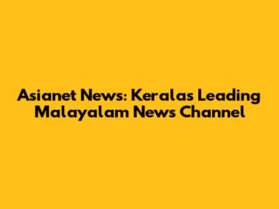 Asianet News: Kerala's Top Malayalam News Channel
