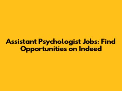 Assistant Psychologist Jobs: Find Opportunities On Indeed