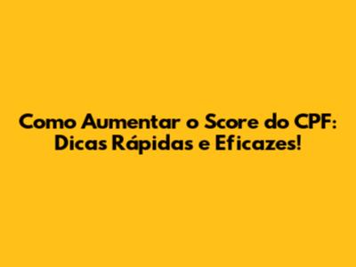 Aumentar Score CPF: Dicas Rápidas E Eficazes!