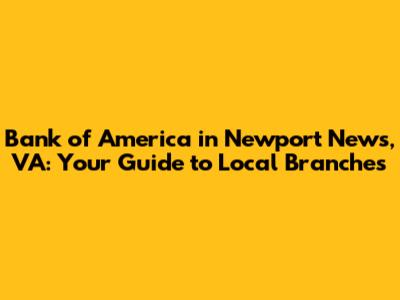 Q: What are the typical hours of operation for Bank of America branches in Newport News? A: Hours vary by branch, but most are open Monday through Friday, with limited hours on Saturdays. Check the specific branch's information on the Bank of America website or app for exact hours.