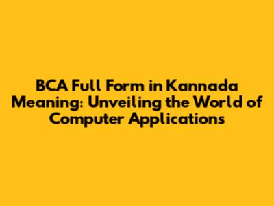 BCA In Kannada: Meaning, Scope, And Career Paths