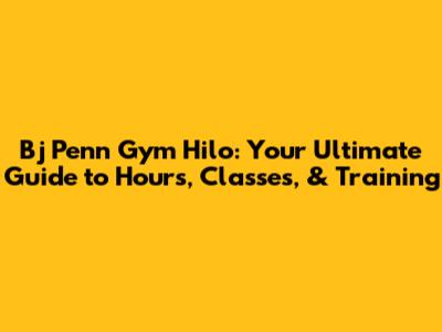 Bj Penn Gym Hilo: Hours, Classes, & Training You Need To Know!