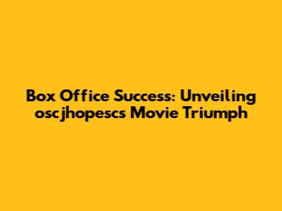 Box Office Success: Unveiling Oscjhopesc's Movie Triumph