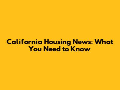 California Housing News: What You Need To Know