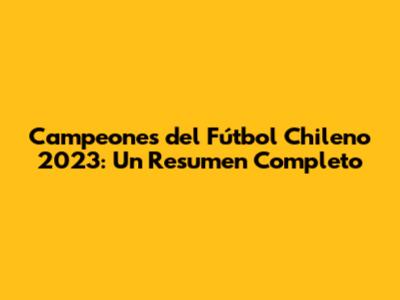 Campeones Del Fútbol Chileno 2023: Un Resumen Completo
