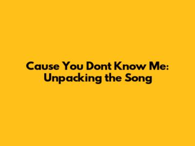 Cause You Don't Know Me: Unpacking The Song