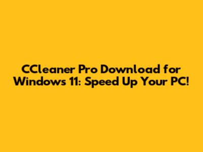 CCleaner Pro Download For Windows 11: Speed Up Your PC!
