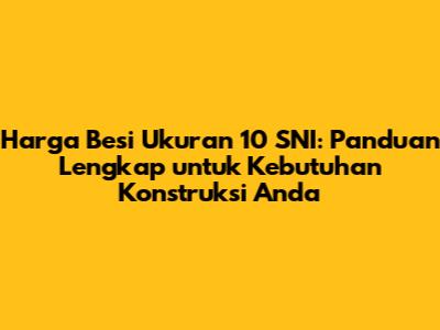 Harga besi ukuran 10 SNI memang bervariasi, tetapi investasi pada besi berkualitas sangat penting untuk memastikan keamanan dan ketahanan bangunan Anda. Dengan memahami faktor-faktor yang memengaruhi harga, tips memilih besi berkualitas, serta rekomendasi tempat pembelian, Anda bisa mendapatkan besi ukuran 10 SNI yang sesuai dengan kebutuhan dan anggaran Anda. Jangan ragu untuk melakukan riset dan membandingkan harga sebelum membeli, ya! Semoga artikel ini bermanfaat!