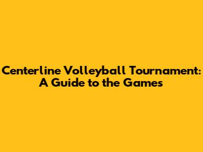 Centerline Volleyball Tournament: A Guide To The Games