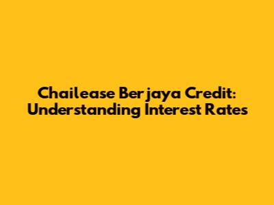 Navigating the world of Chailease Berjaya Credit and understanding their interest rates can feel like a maze, but don't worry, guys, we're here to break it down. Whether you're looking at financing equipment, vehicles, or other business assets, knowing the ins and outs of interest is crucial for making informed decisions and keeping your finances healthy. Let's dive into everything you need to know about Chailease Berjaya Credit interest rates.