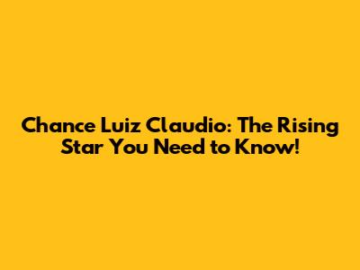 Chance Luiz Claudio: The Rising Star You Need To Know!