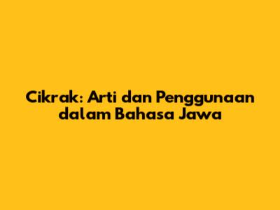 Cikrak: Arti Dan Penggunaan Dalam Bahasa Jawa
