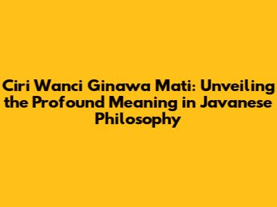 Ciri Wanci Ginawa Mati: Understanding Its Profound Meaning