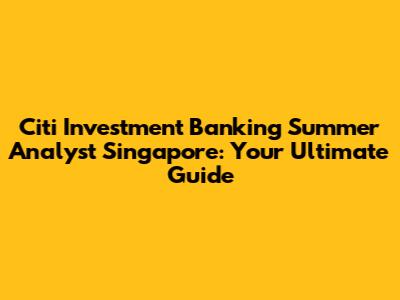 Citi Investment Banking Summer Analyst: Singapore Guide
