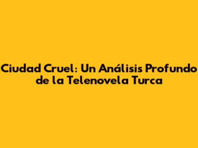 Ciudad Cruel: Un Análisis Profundo De La Telenovela Turca