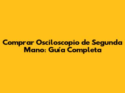 Comprar Osciloscopio De Segunda Mano: Guía Completa