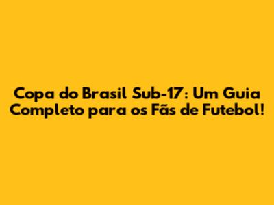 Copa Do Brasil Sub-17: Tudo O Que Você Precisa Saber!