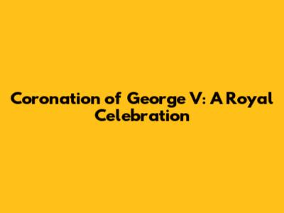 Coronation Of George V: A Royal Celebration