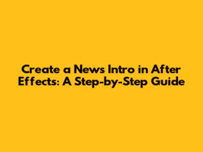Create A News Intro In After Effects: A Step-by-Step Guide