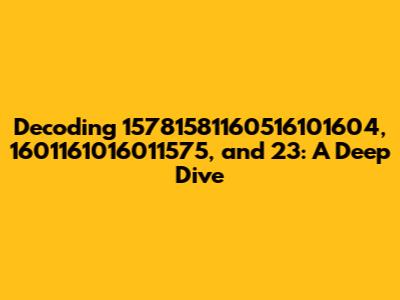 Decoding 15781581160516101604, 1601161016011575, And 23: A Deep Dive