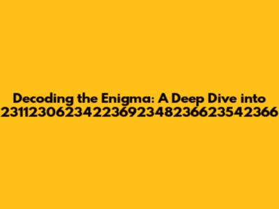 Hey guys, let's dive headfirst into this mystery, the numerical sequence 23112306234223692348236623542366. It looks a bit like a complex code, right? Well, that's exactly what we're going to tackle! This article is designed to be your comprehensive guide to understanding this sequence. We'll explore various possibilities, interpretations, and potential meanings behind this string of numbers. I promise, by the end of this journey, you'll have a much clearer picture of what this might represent. We'll be going through different analytical approaches to unravel the secrets hidden within this seemingly random combination. Buckle up, because we're about to decode the enigma that is 23112306234223692348236623542366!
