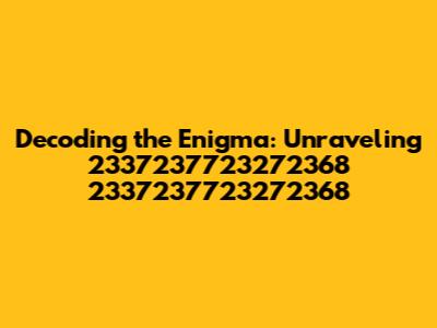 Decoding The Enigma: Unraveling 2337237723272368 2337237723272368