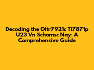 Decoding The Oitr7921c Ti7871p U23 Vn Schomsc Nay: A Comprehensive Guide
