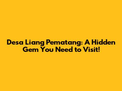 Hey guys! Ever heard of Desa Liang Pematang? If not, buckle up because I'm about to take you on a virtual trip to a place that's seriously worth knowing about. Nestled away from the usual tourist traps, this village offers a unique blend of culture, nature, and tranquility that's hard to find anywhere else. So, let's dive in and explore what makes Desa Liang Pematang so special!