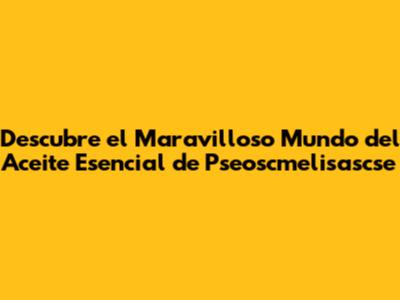 ¿Qué es el Aceite Esencial de Pseoscmelisascse?