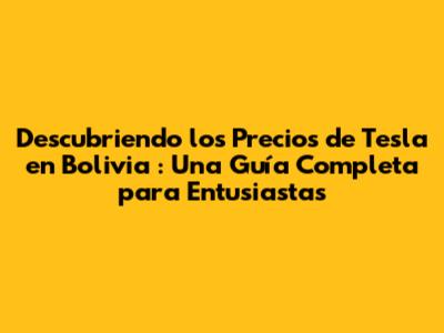 Descubre Los Precios De Tesla En Bolivia: Guía Completa