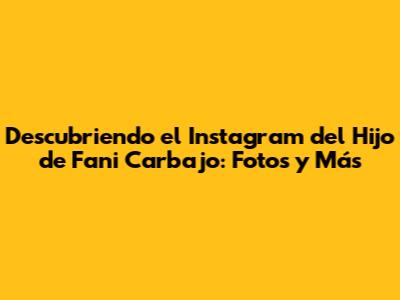 ¡Hola a todos! Seguro que muchos de vosotros, fans de Fani Carbajo, os habéis preguntado alguna vez sobre la vida de su hijo. Y, por supuesto, una de las mayores curiosidades es el Instagram del hijo de Fani Carbajo. Pues bien, en este artículo os vamos a contar todo lo que sabemos, desde cómo encontrar su perfil hasta qué tipo de contenido podéis esperar. Prepárense para una inmersión en el mundo digital del pequeño de la casa, donde las fotos, los momentos especiales y la vida cotidiana se entrelazan. ¡Vamos allá!