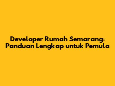 Developer Rumah Semarang: Panduan Lengkap Untuk Pemula