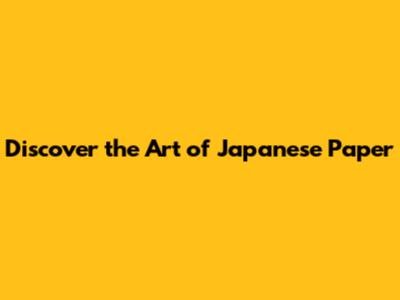 Discover The Art Of Japanese Paper