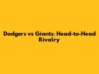 Dodgers Vs Giants: Head-to-Head Rivalry