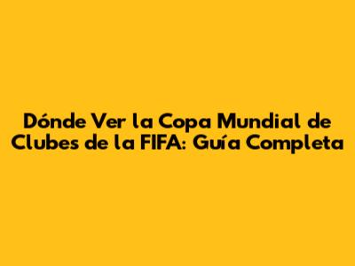 Dónde Ver La Copa Mundial De Clubes De La FIFA: Guía Completa
