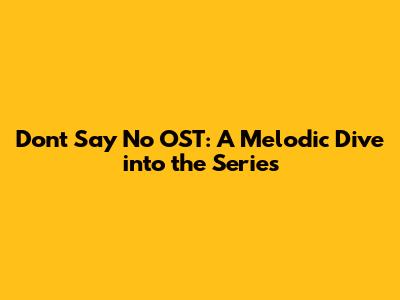 Don't Say No OST: A Melodic Dive Into The Series