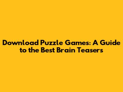 Download Puzzle Games: A Guide To The Best Brain Teasers