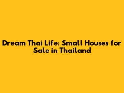 Dream Thai Life: Small Houses For Sale In Thailand