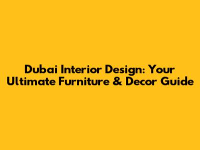 Dubai Interior Design: Furniture & Decor Guide