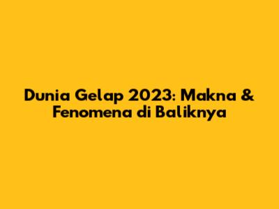 Dunia Gelap 2023: Makna & Fenomena Di Baliknya